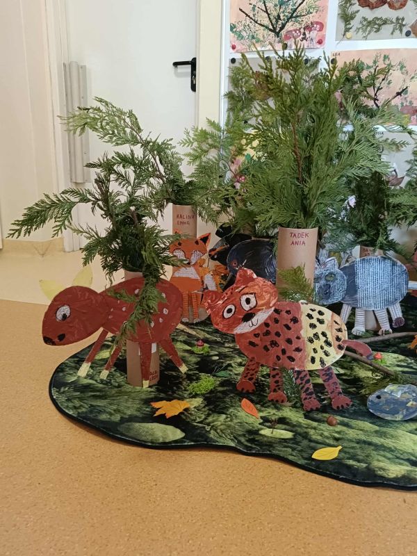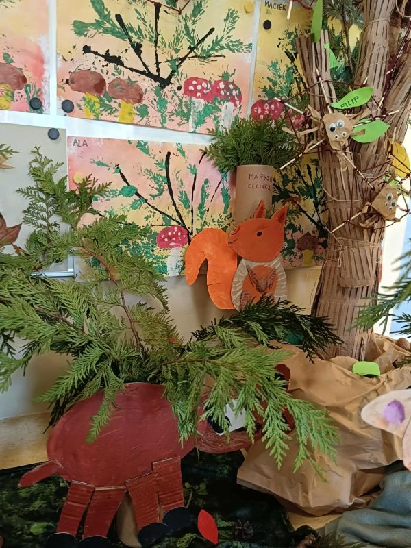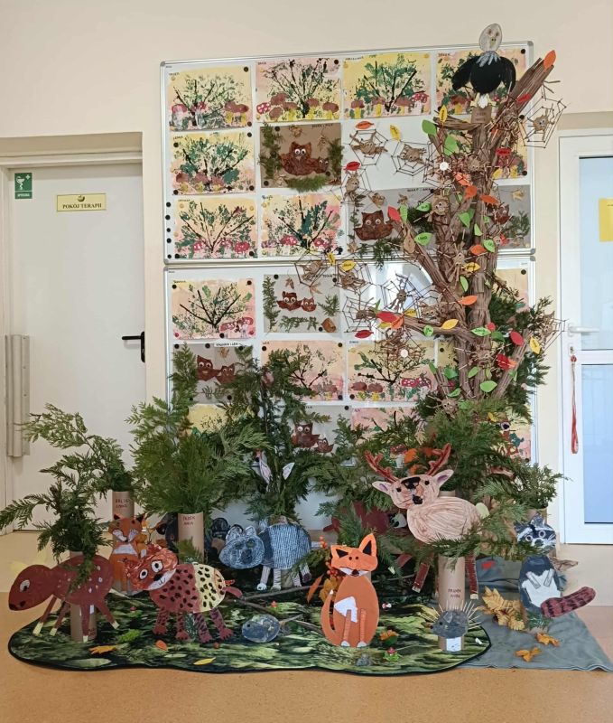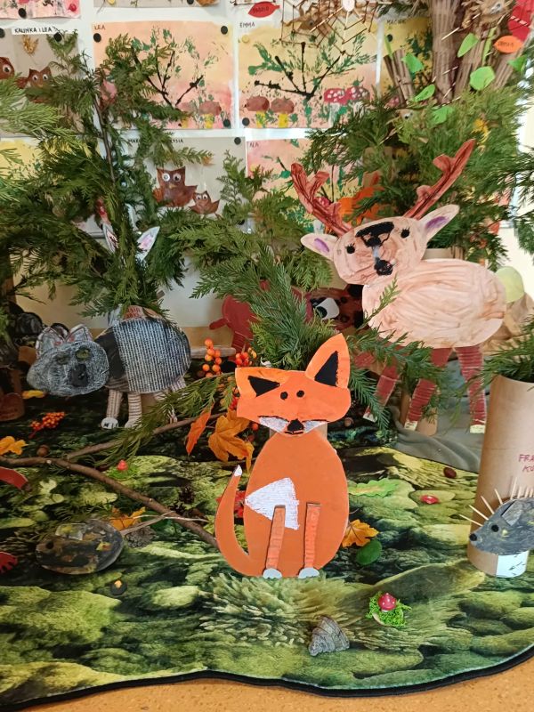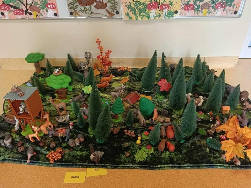 W ostatnim czasie poznaliśmy wiele ciekawostek dotyczących lasu i jego mieszkańców. Przeczytaliśmy wiele książeczek o tej tematyce, poznaliśmy nową pomoc - makietę "Las" oraz sami wykonaliśmy wiele leśnych prac plastycznych.