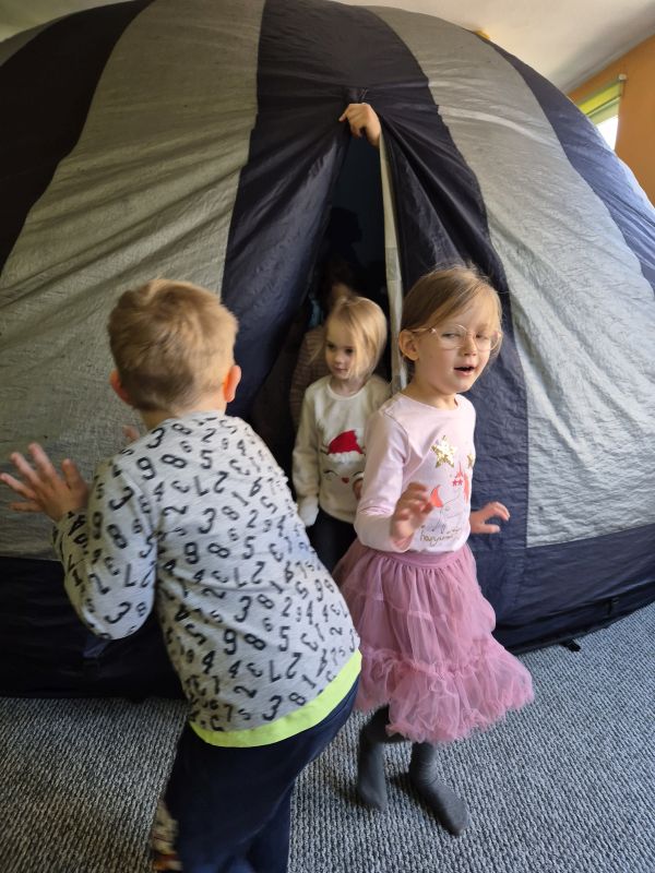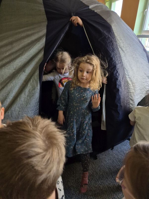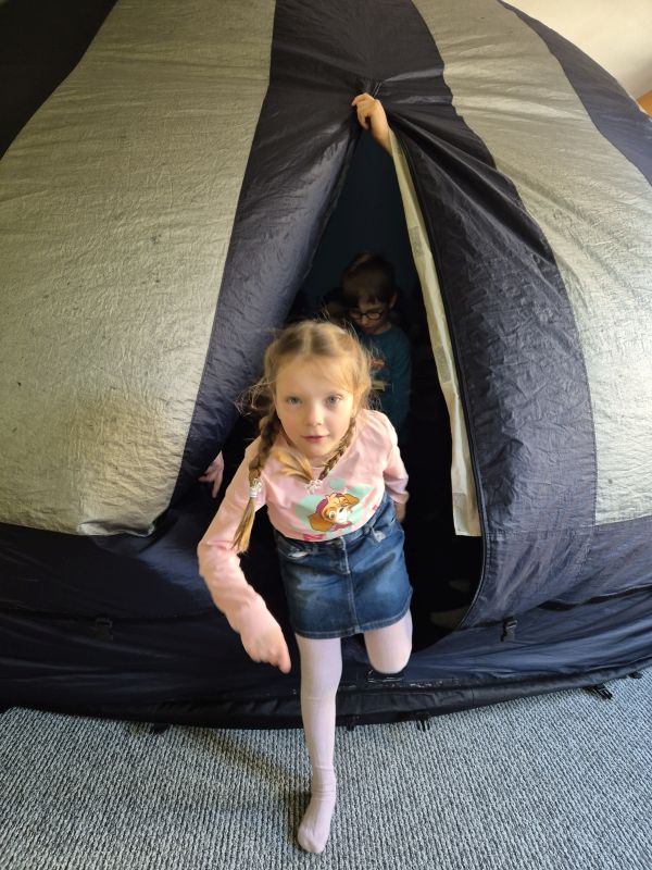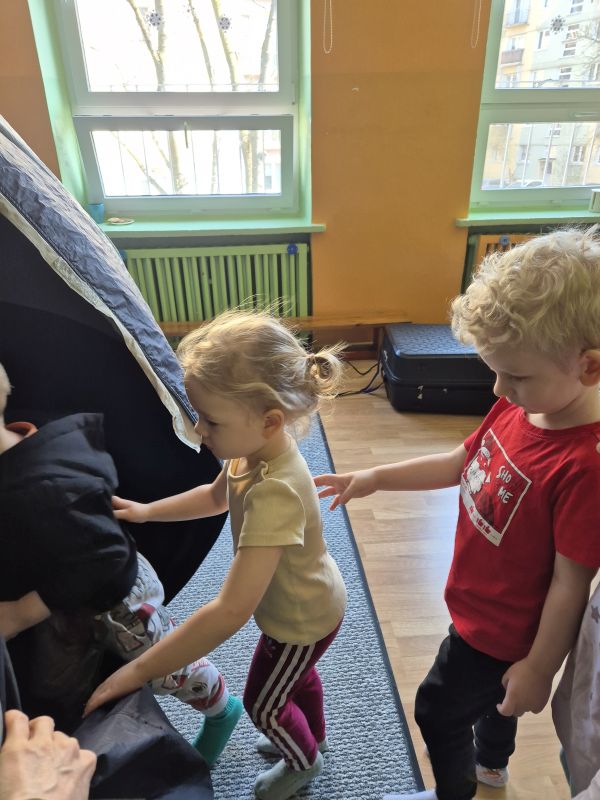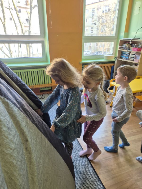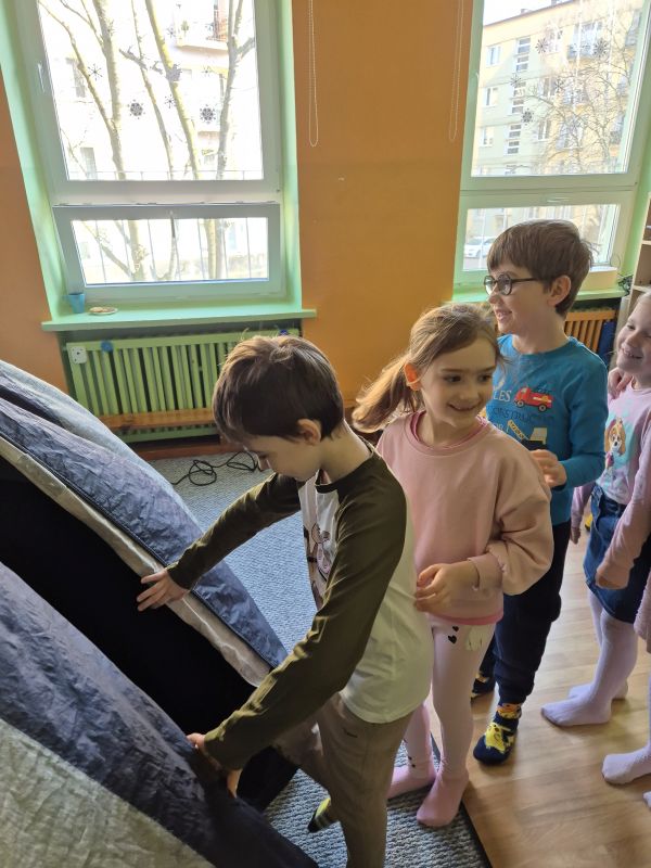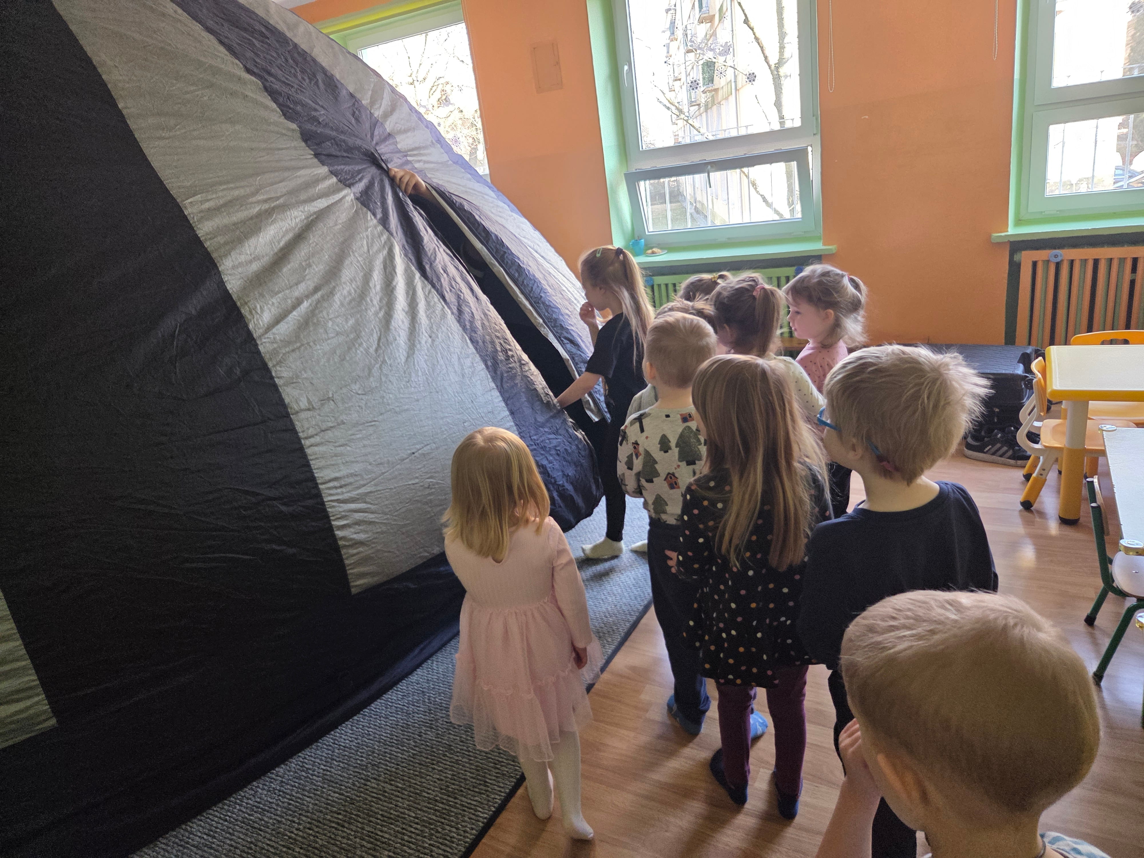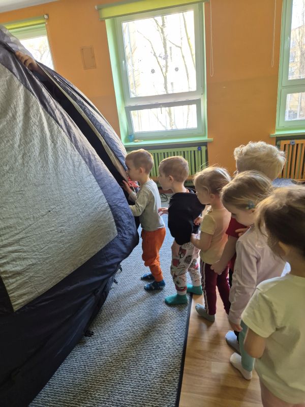 04.03.2026r. od godz. 9.30 Dzieci ze wszystkich grup oglądały bajkę w Kinie Sferycznym.