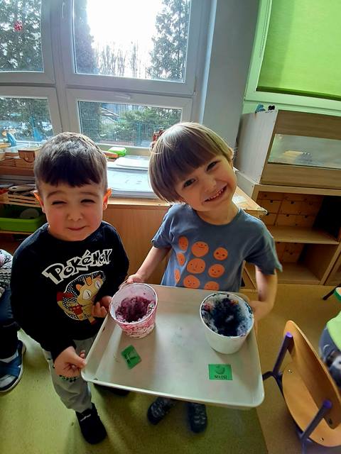 Eksperymentowanie z „kolorowaniem śniegu” pokazało dzieciom, jak barwy przenikają przez porowatą strukturę puchu, tworząc bajkowe efekty. Zapraszamy do obejrzenia fotorelacji!