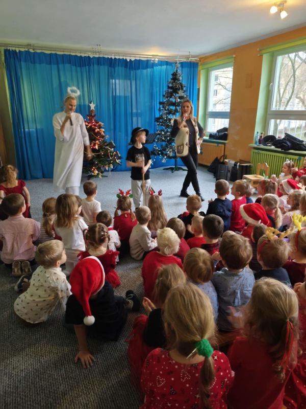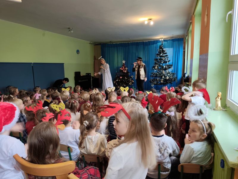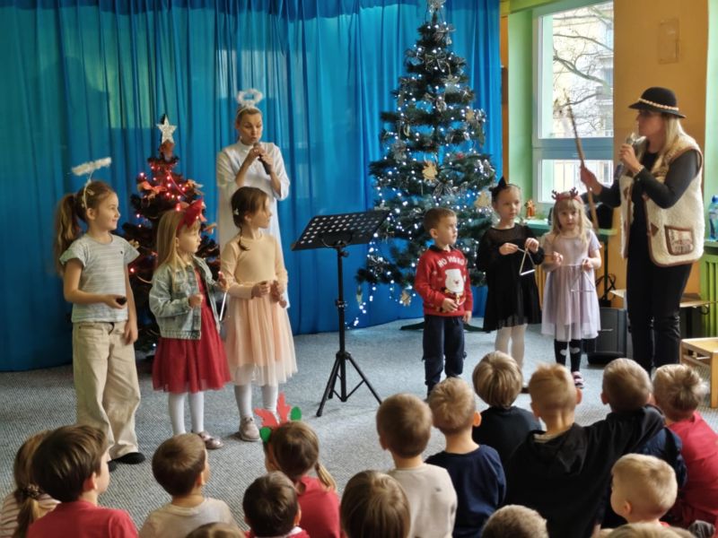 05.12.2025r. o godz. 12.30 wszystkie Dzieci uczestniczyły w świątecznym koncercie muzycznym, który odbył się na sali gimnastycznej.