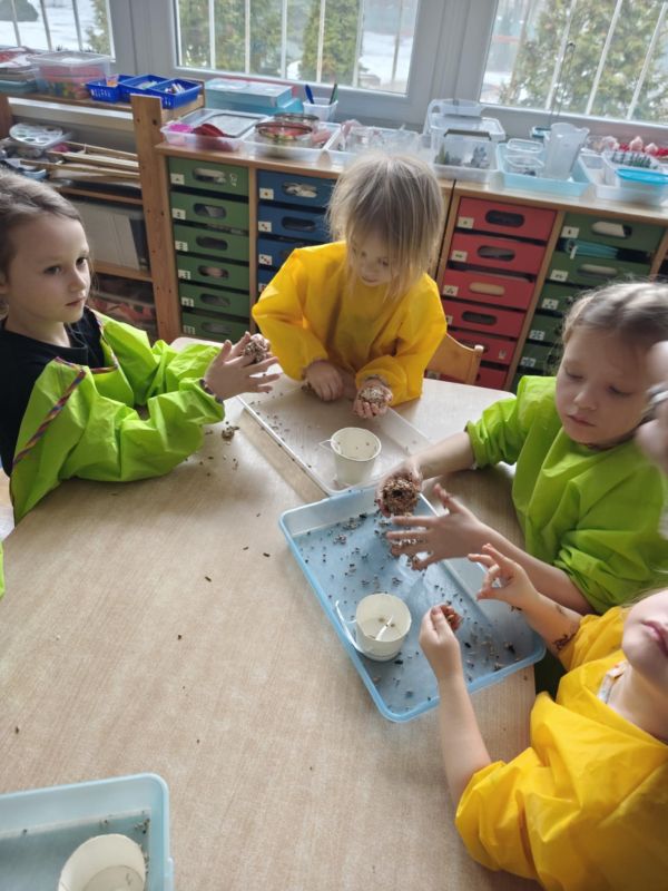 Pamiętamy o ptakach w zimowym czasie. Z okazji tłustego czwartku przygotowaliśmy dla nich "pączki".